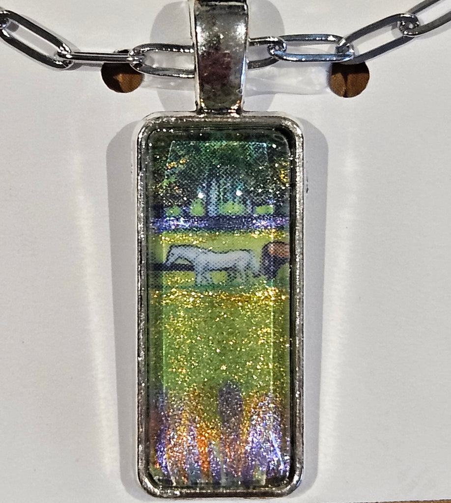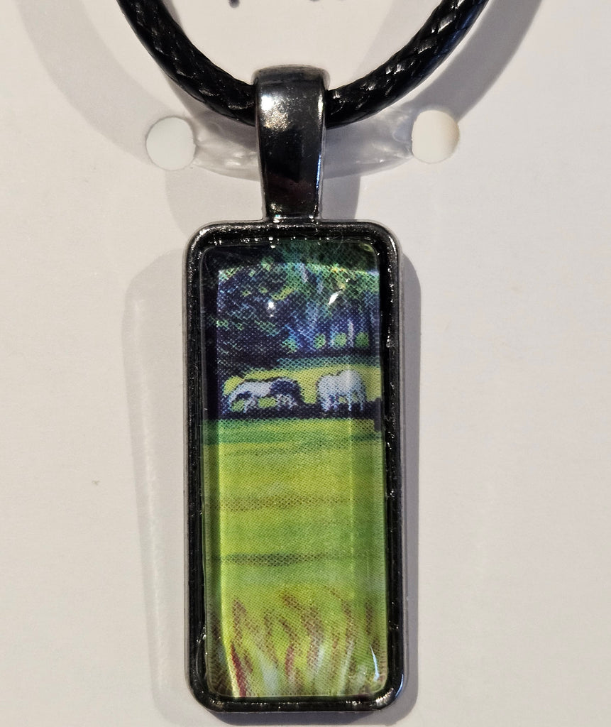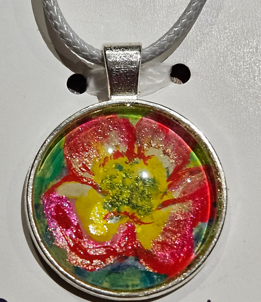 Artists' original handpainted wearable art glass pendant necklaces or painted wood pendant.