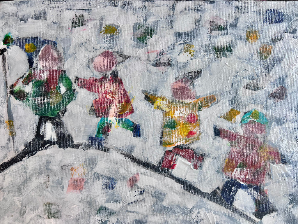 Inspired by some of my favourite childhood memories, I’ve been working on three versions of a new painting series featuring four kids playing that classic schoolyard game we all knew so well: “King of the Castle.” It was a rite of passage—though I’ll admit, I was never very good at it! But it taught me resilience and determination.