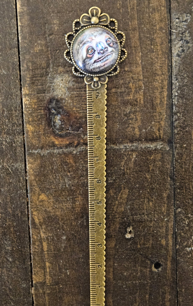 Metal and glass bookmark of cardinals, sloth, blue cow and owl.