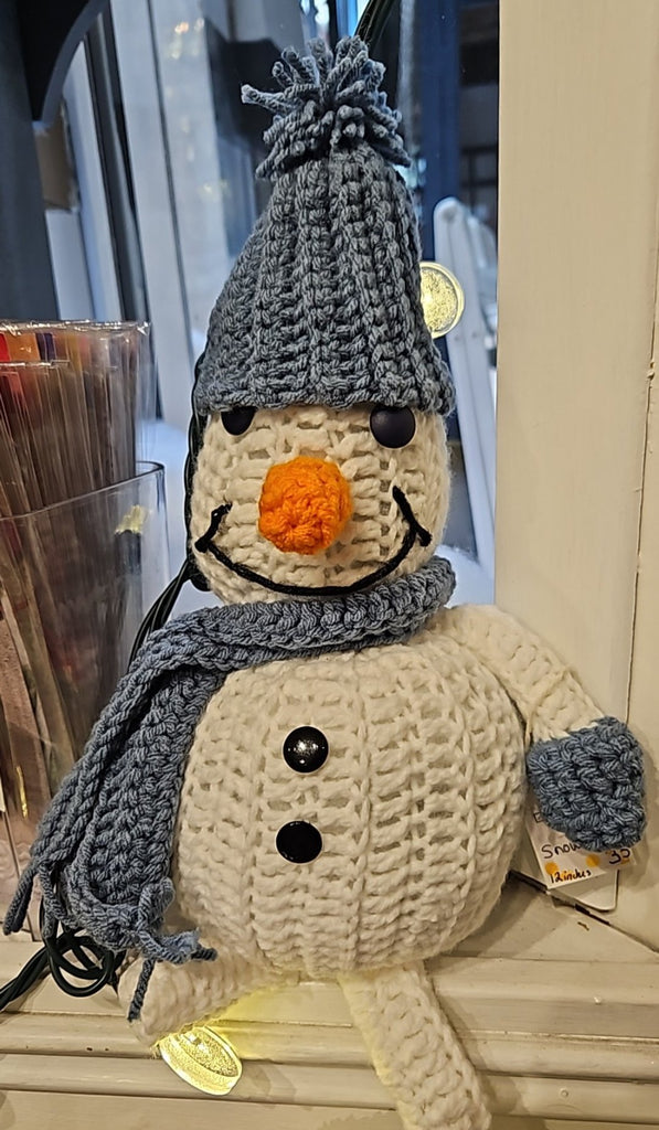 Crocheted snowman to decorate your shelves or make a center with these cute guys.