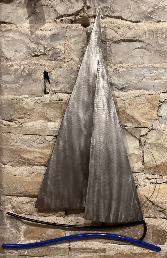 stainless steel sails, clear coat, painted metal boat and waves