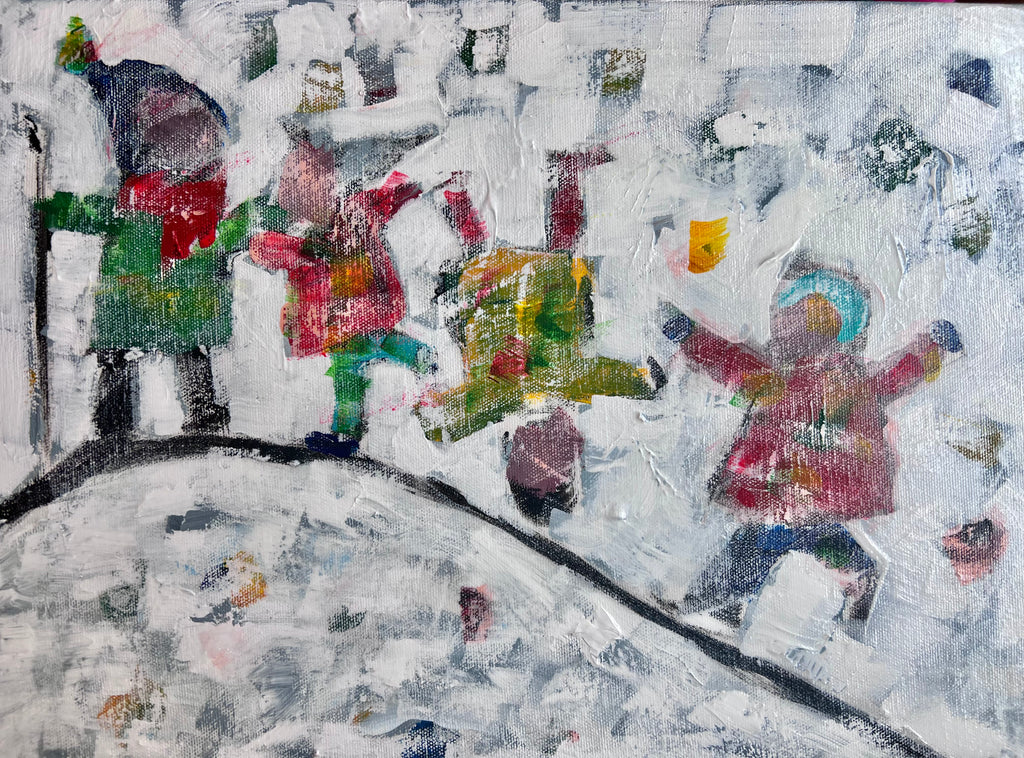 Inspired by some of my favourite childhood memories, I’ve been working on three versions of a new painting series featuring four kids playing that classic schoolyard game we all knew so well: “King of the Castle.” It was a rite of passage—though I’ll admit, I was never very good at it! But it taught me resilience and determination.