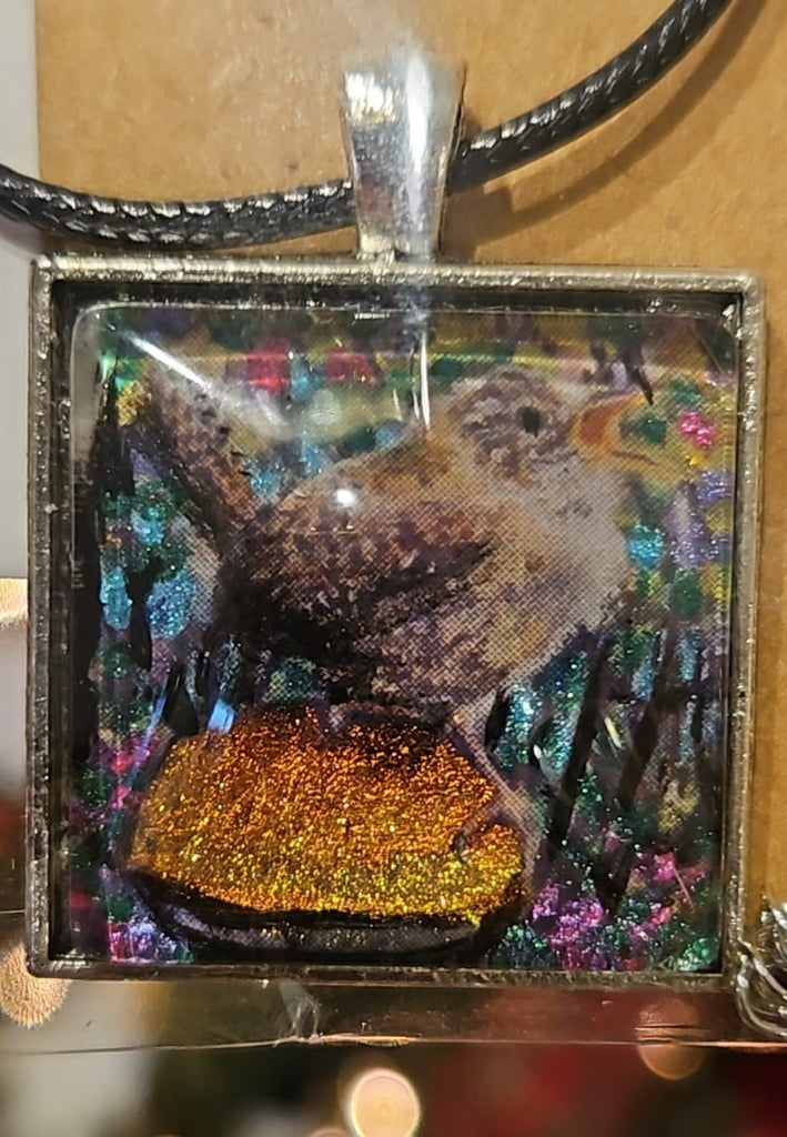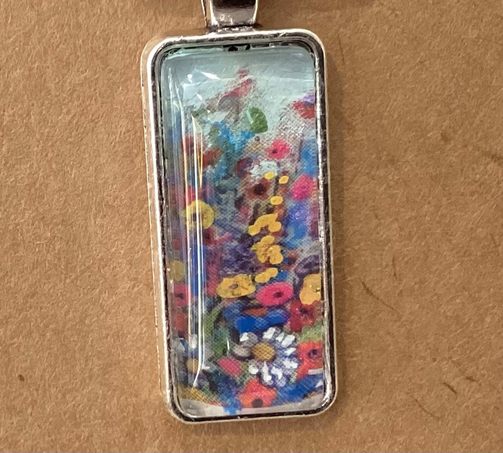 Artists' original handpainted wearable art glass pendant necklaces or painted wood pendant.