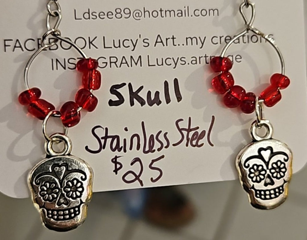 Most are from the artists beautiful collection of large beads, charms, and some are handmade or painted By artist.