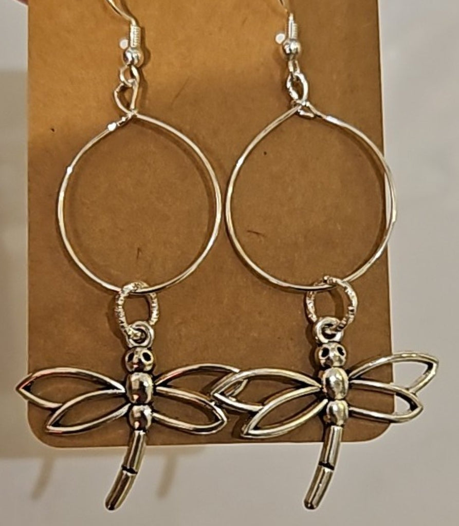 Sterling silver or stainless steel or gold fish hook with round loop earrings with bead.