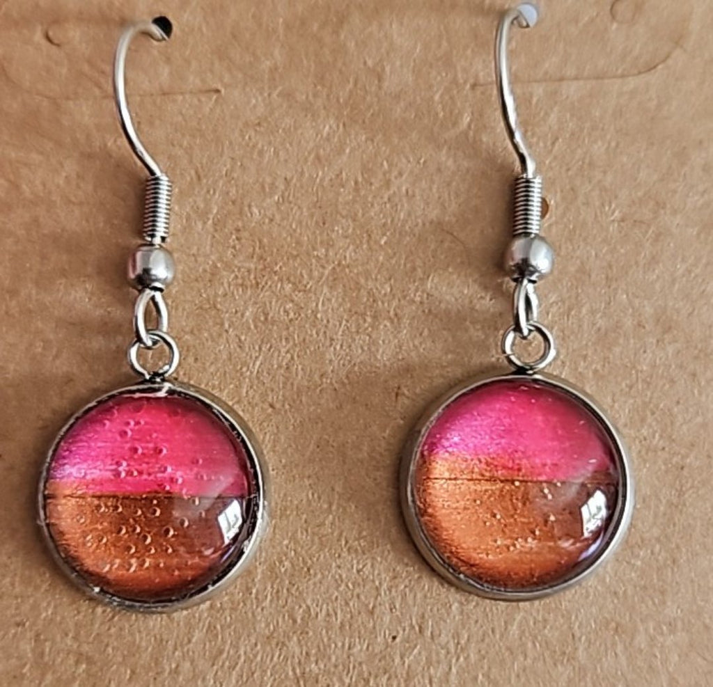 One set is a 2 in 1 earrings, round wood hand painted design on both sides. Some have a charm added. Can switch to wear either side.