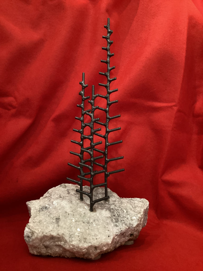 Three trees mounted on white rock black painted finish. This beautiful rock and tree can go on your deck or in your home. But this tree is solidly anchored to the rock.