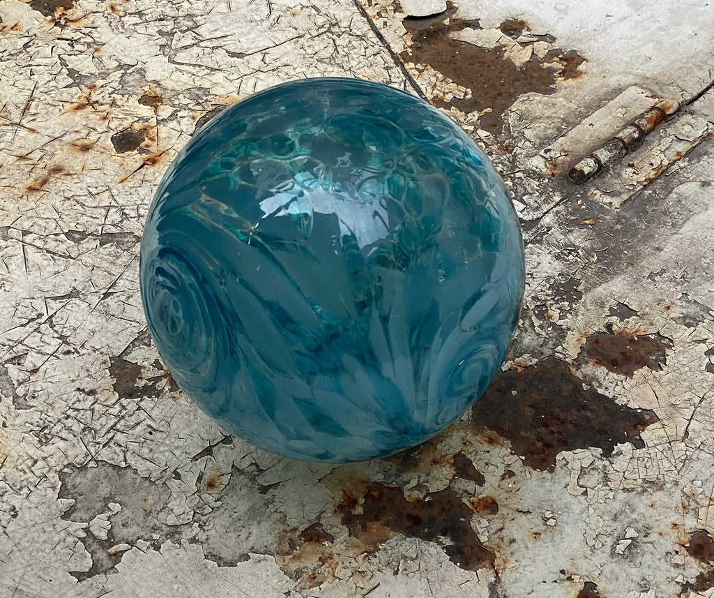 Handcrafted decorative friendship ball made by Kingston Glass Studio. Perfect for any gift or window adornment, each friendship ball is a bright spot of colour. Approximately 4” diameter. As each of these items are individually handmade, slight variations in colour and size are possible.