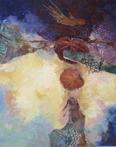 Nature Rising, acrylic, collage, leaves, pine needles on canvas, by Carla Miedema, for $550.00 The pale colours rise up to meet the saturated colours of nature rising. Nature is my inspiration.